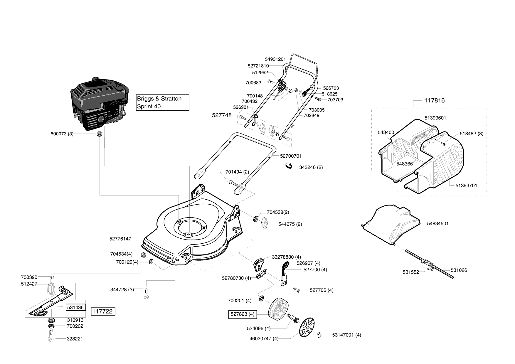 Zeichnungen von Dehner Benzinrasenmäher 47 B 10/2003 - 08/2004 mit der Geräte-Artikelnr. 118386: