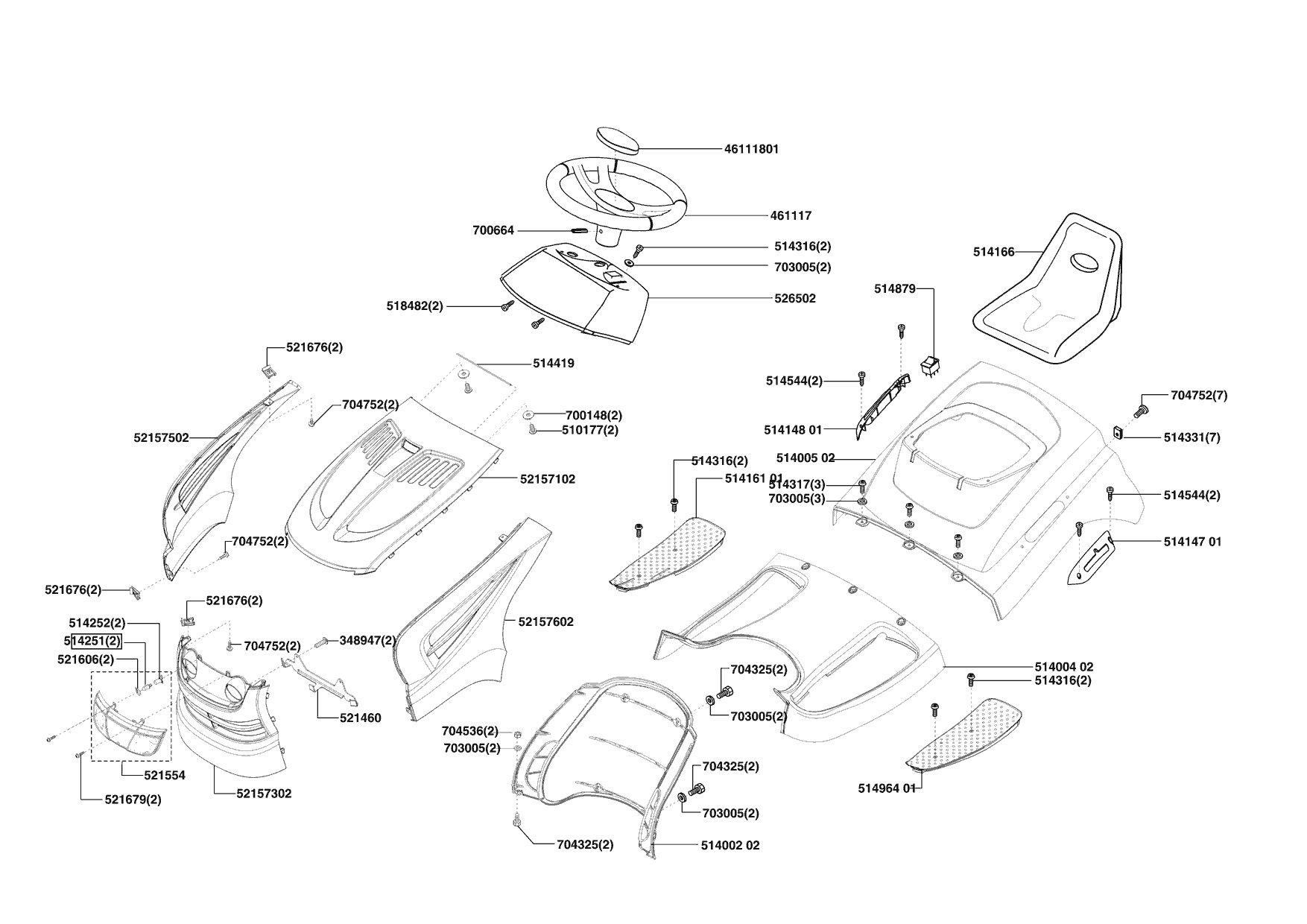 Zeichnungen von Powerline Rasentraktor T 18-102 HD 10/2004 - 06/2005 mit der Geräte-Artikelnr. 118622: