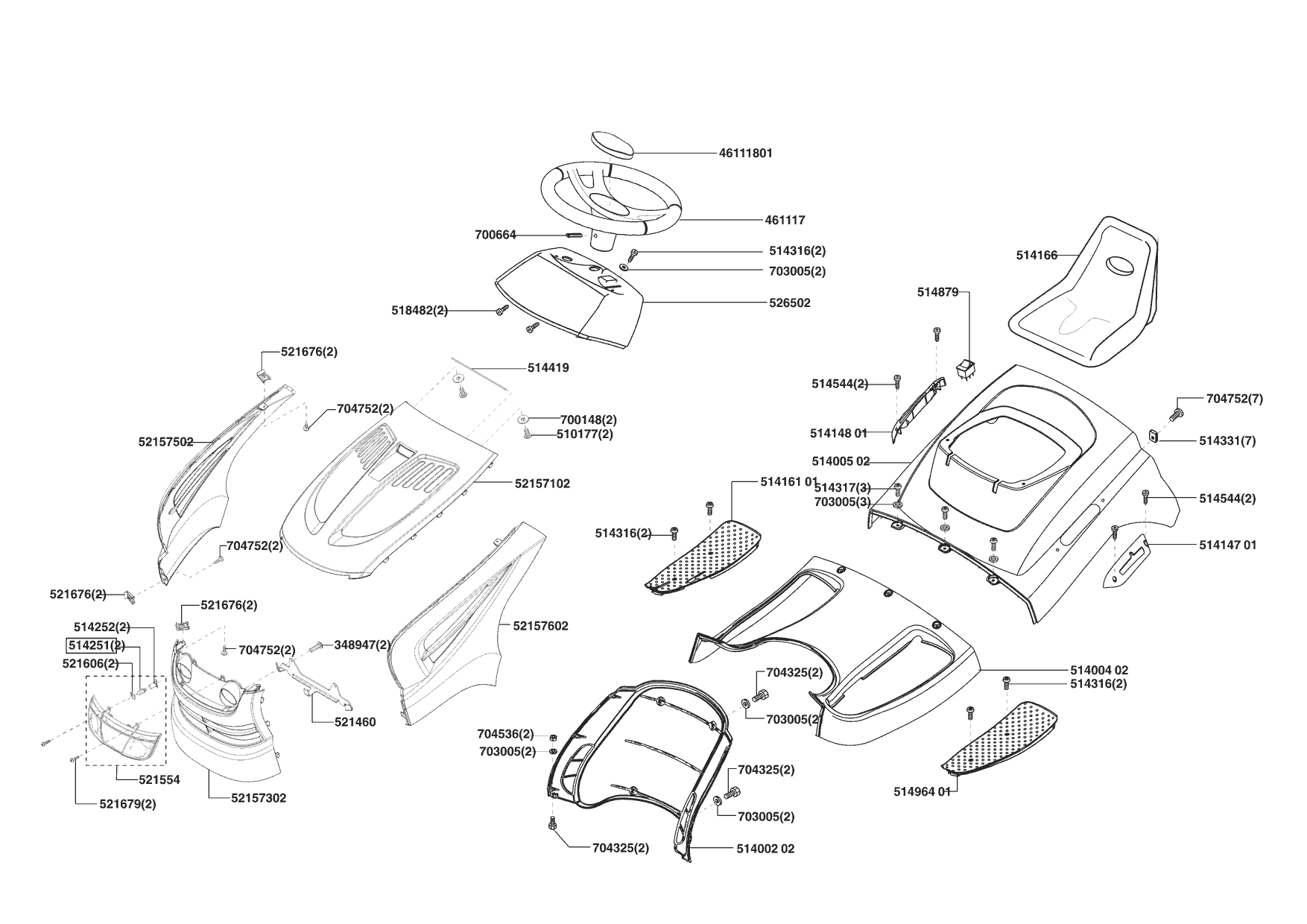 Zeichnungen von Powerline Rasentraktor T 15-102 HD 10/2004 - 07/2005 mit der Geräte-Artikelnr. 118620: