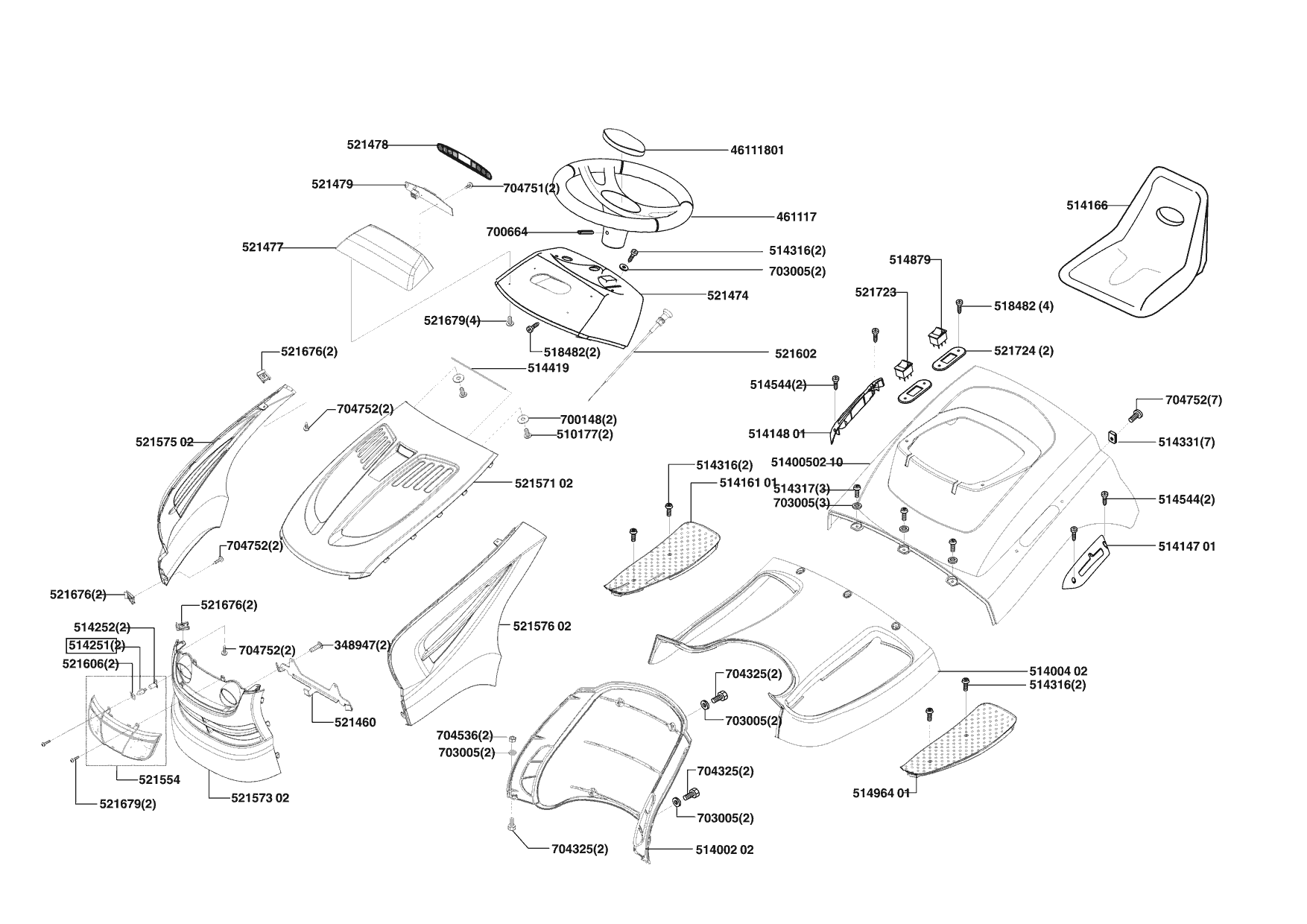Zeichnungen von Powerline Rasentraktor T20-102 HDE 10/2004 - 08/2005 mit der Geräte-Artikelnr. 118624: