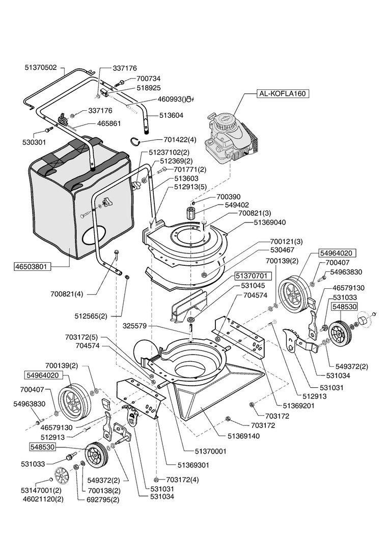 Zeichnungen von AL-KO Laubsauger HURRICANE 75 B 10/2010 - 12/2011 mit der Geräte-Artikelnr. 121403: