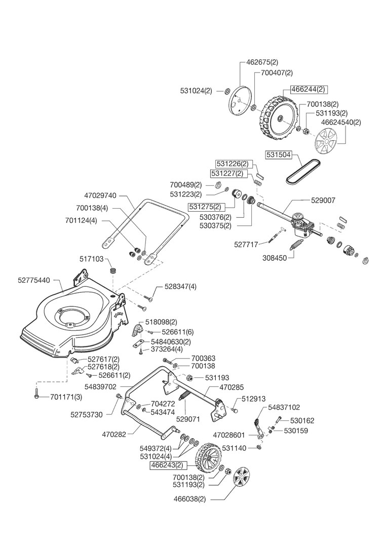 Zeichnungen von AL-KO Benzinrasenmäher Hofer Plus 3R 10/2011 - 11/2012 mit der Geräte-Artikelnr. 121577: