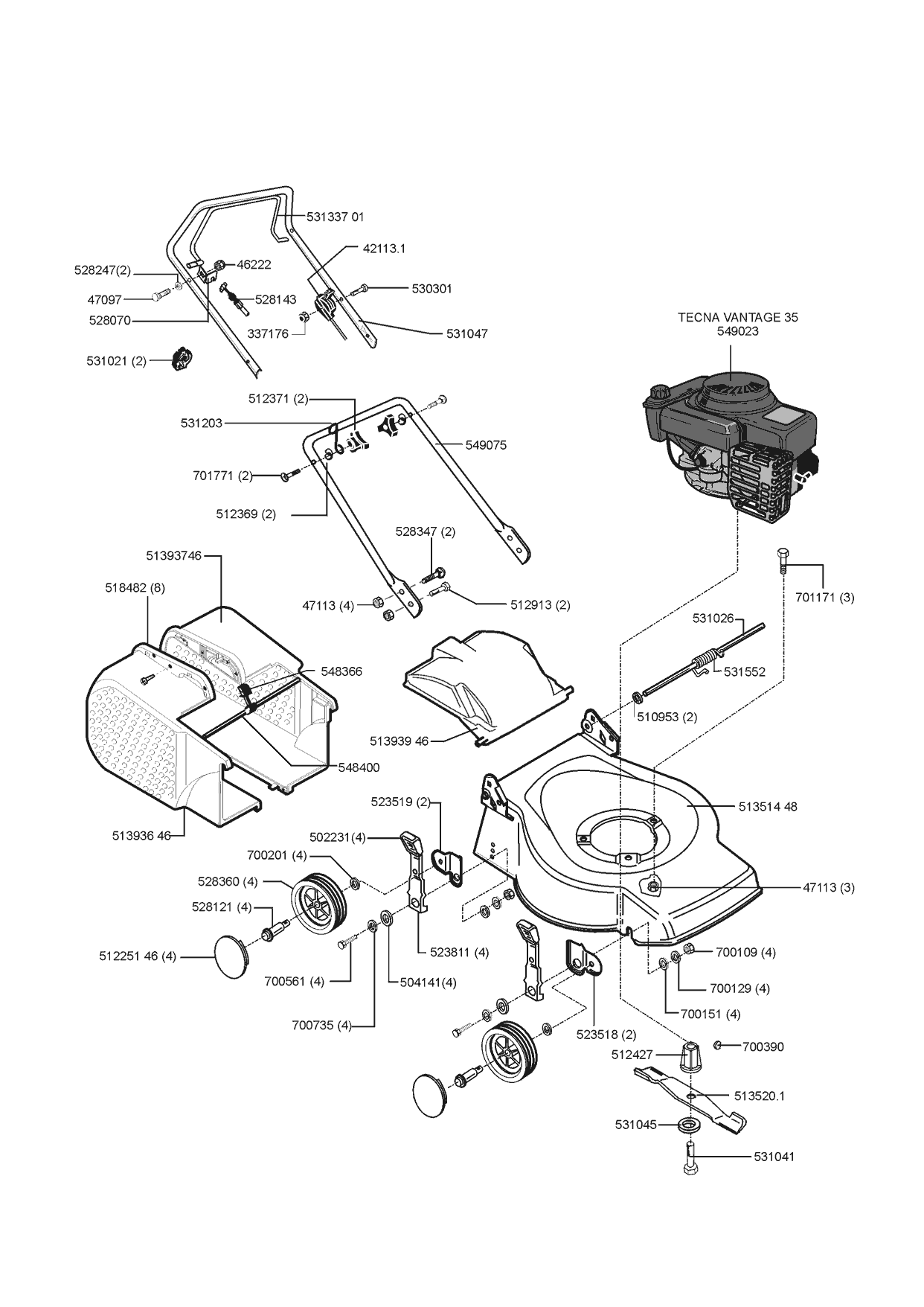 Zeichnungen von Budget Benzinrasenmäher BBM 461 11/1999 - 10/2001 mit der Geräte-Artikelnr. 120912: