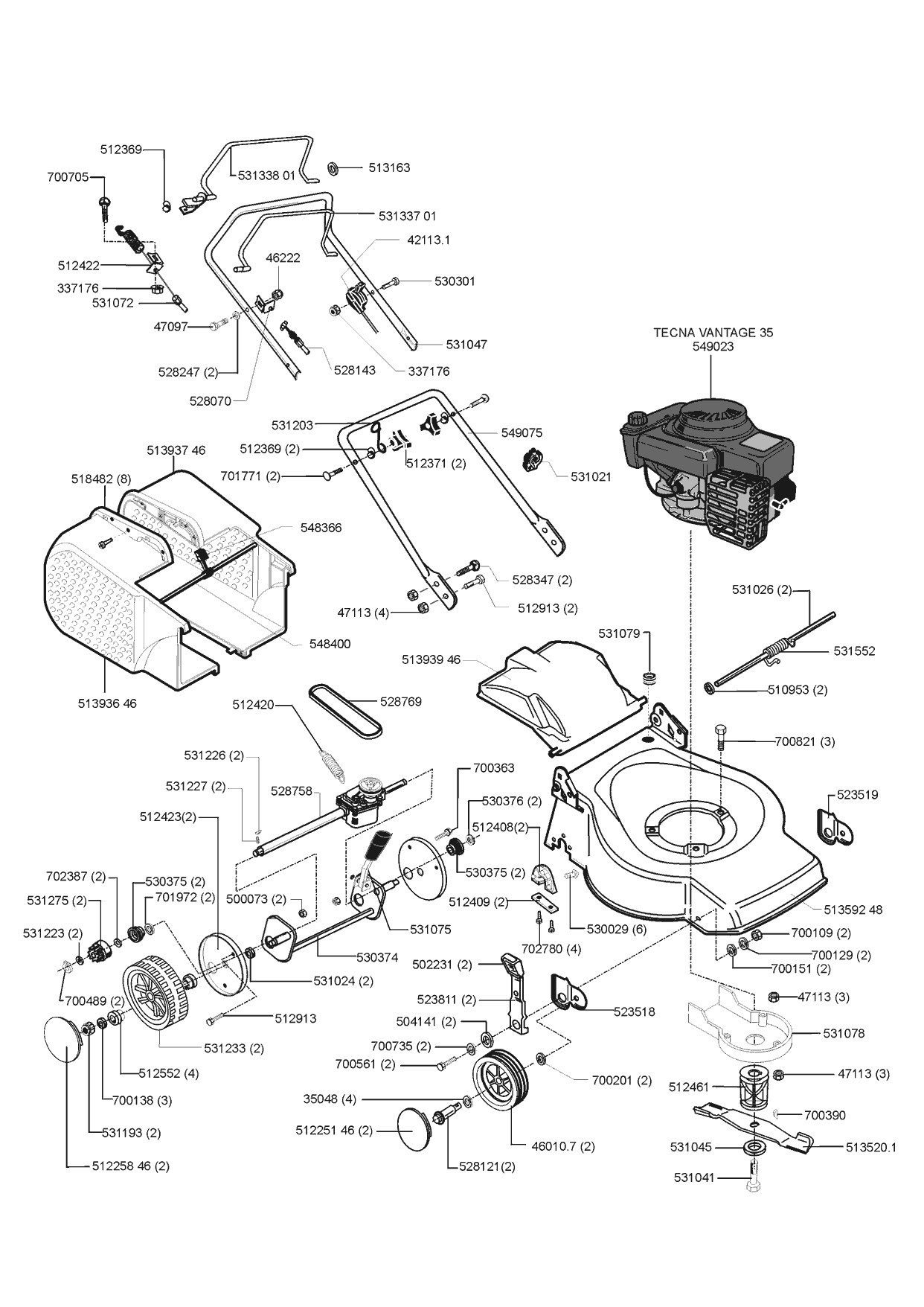 Zeichnungen von Budget Benzinrasenmäher BBM 461 R 11/1999 - 10/2001 mit der Geräte-Artikelnr. 120913:
