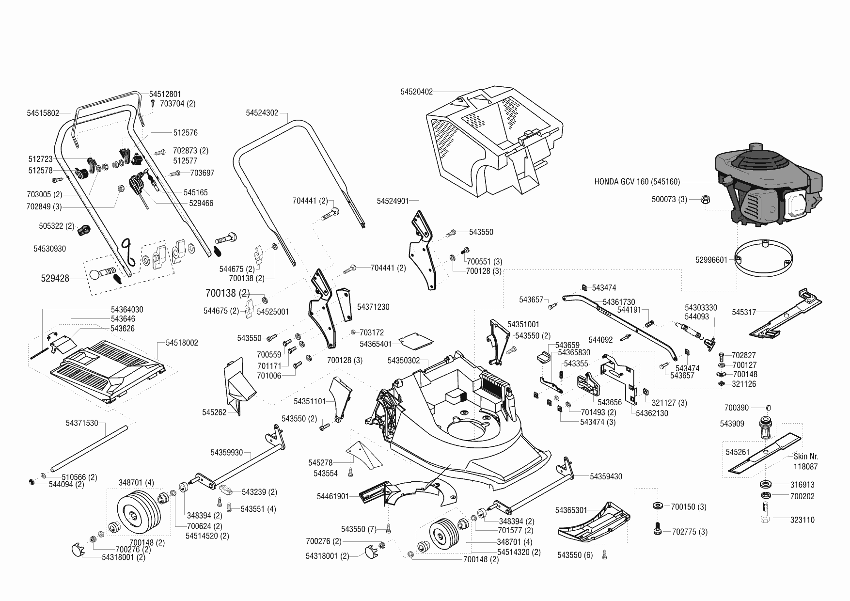 Zeichnungen von Concord Benzinrasenmäher 4800 B XXL 11/2001 - 02/2002 mit der Geräte-Artikelnr. 118149: