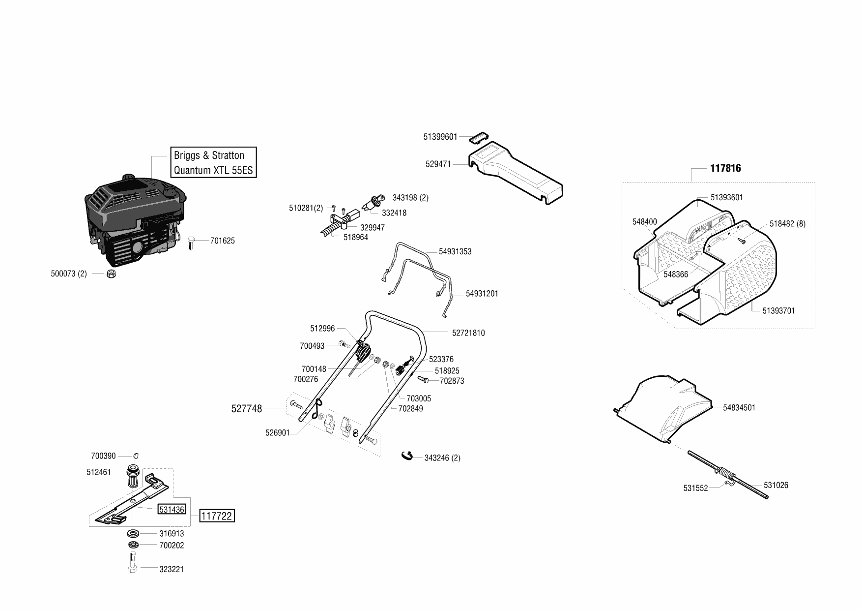 Zeichnungen von Dehner Benzinrasenmäher B 47 HESZ 11/2001 - 02/2002 mit der Geräte-Artikelnr. 118081: