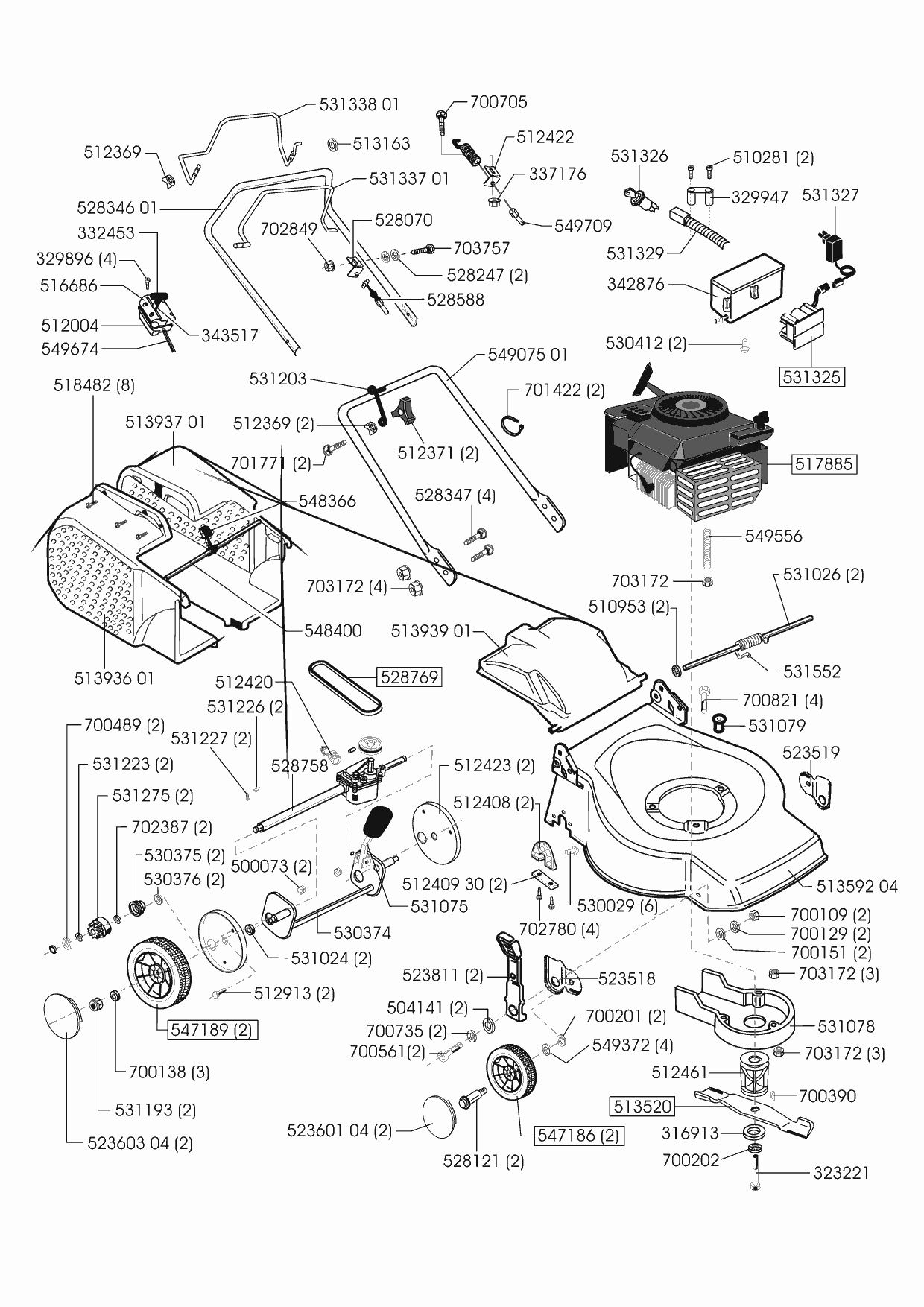 Zeichnungen von Ginge Benzinrasenmäher Classic 46 B Auto ES 11/2001 - 03/2002 mit der Geräte-Artikelnr. 121025:
