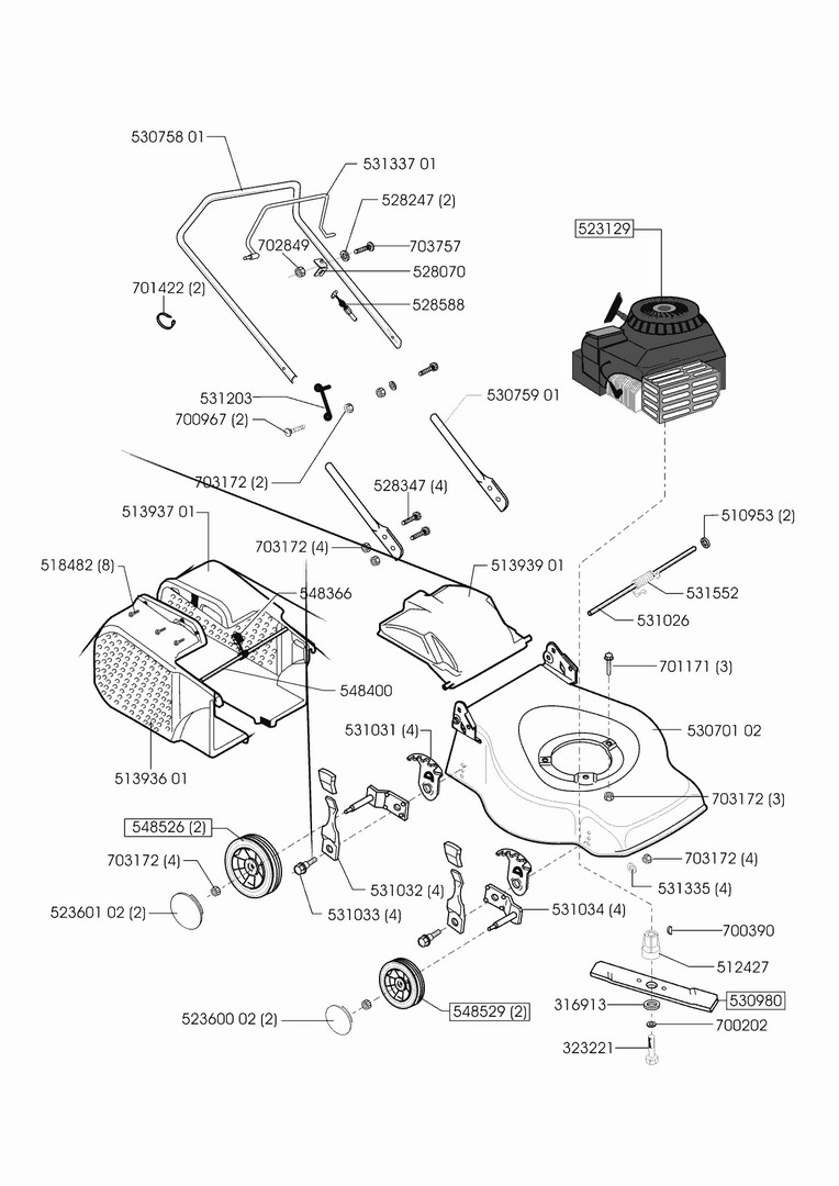 Zeichnungen von AL-KO Benzinrasenmäher New Classic 414 11/2001 - 05/2005 mit der Geräte-Artikelnr. 121048:
