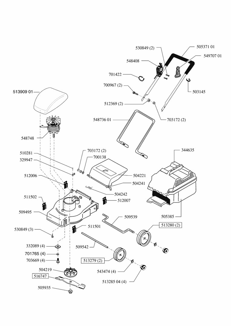 Zeichnungen von AL-KO Elektrorasenmäher Euro 900 11/2002 - 03/2003 mit der Geräte-Artikelnr. 121031: