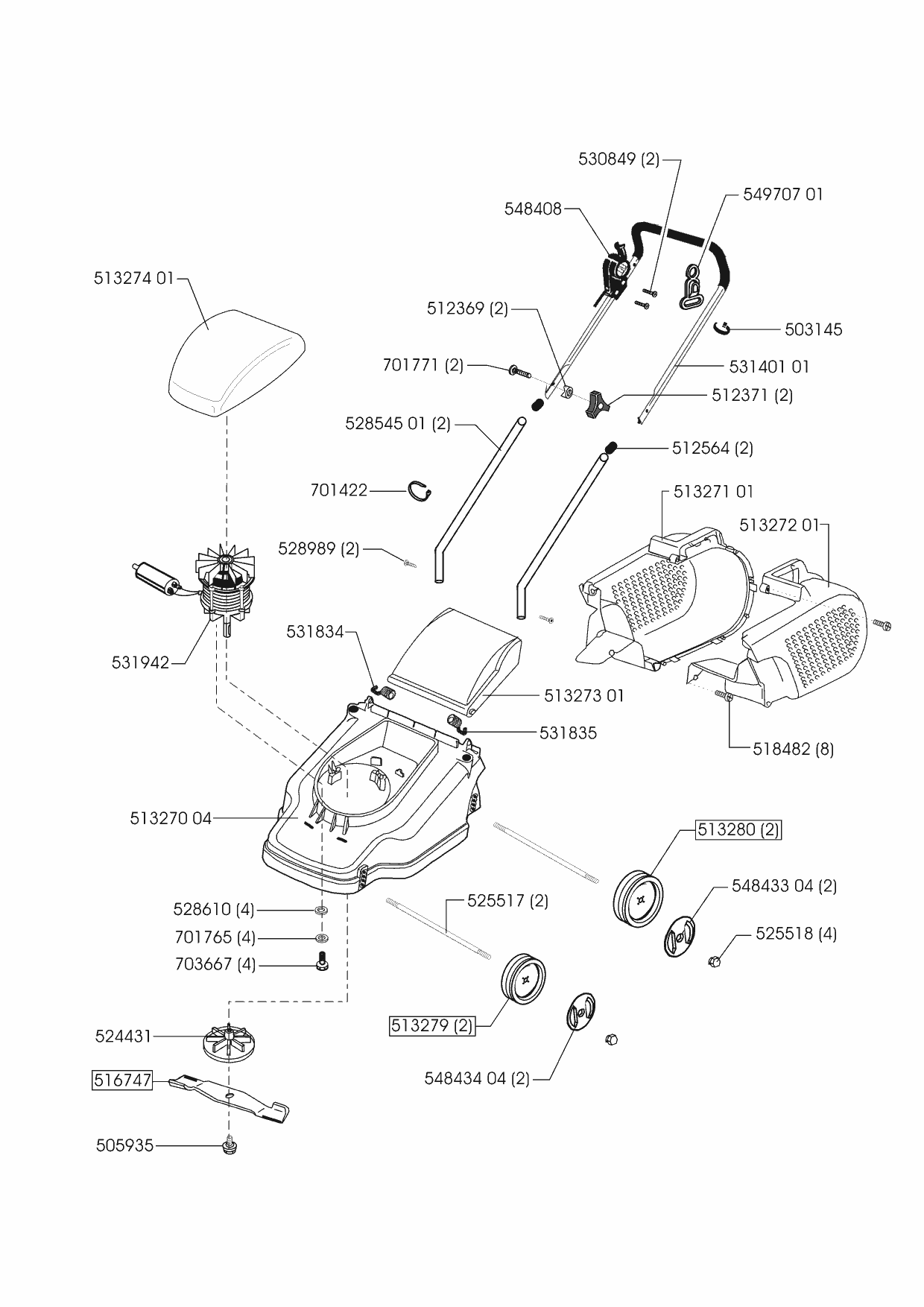 Zeichnungen von Ginge Elektrorasenmäher Classic 32 E 11/2002 - 07/2003 mit der Geräte-Artikelnr. 120967: