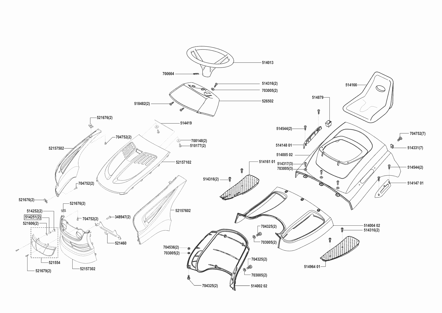 Zeichnungen von Concord Rasentraktor T15-102 HD 11/2002 - 10/2003 mit der Geräte-Artikelnr. 118333:
