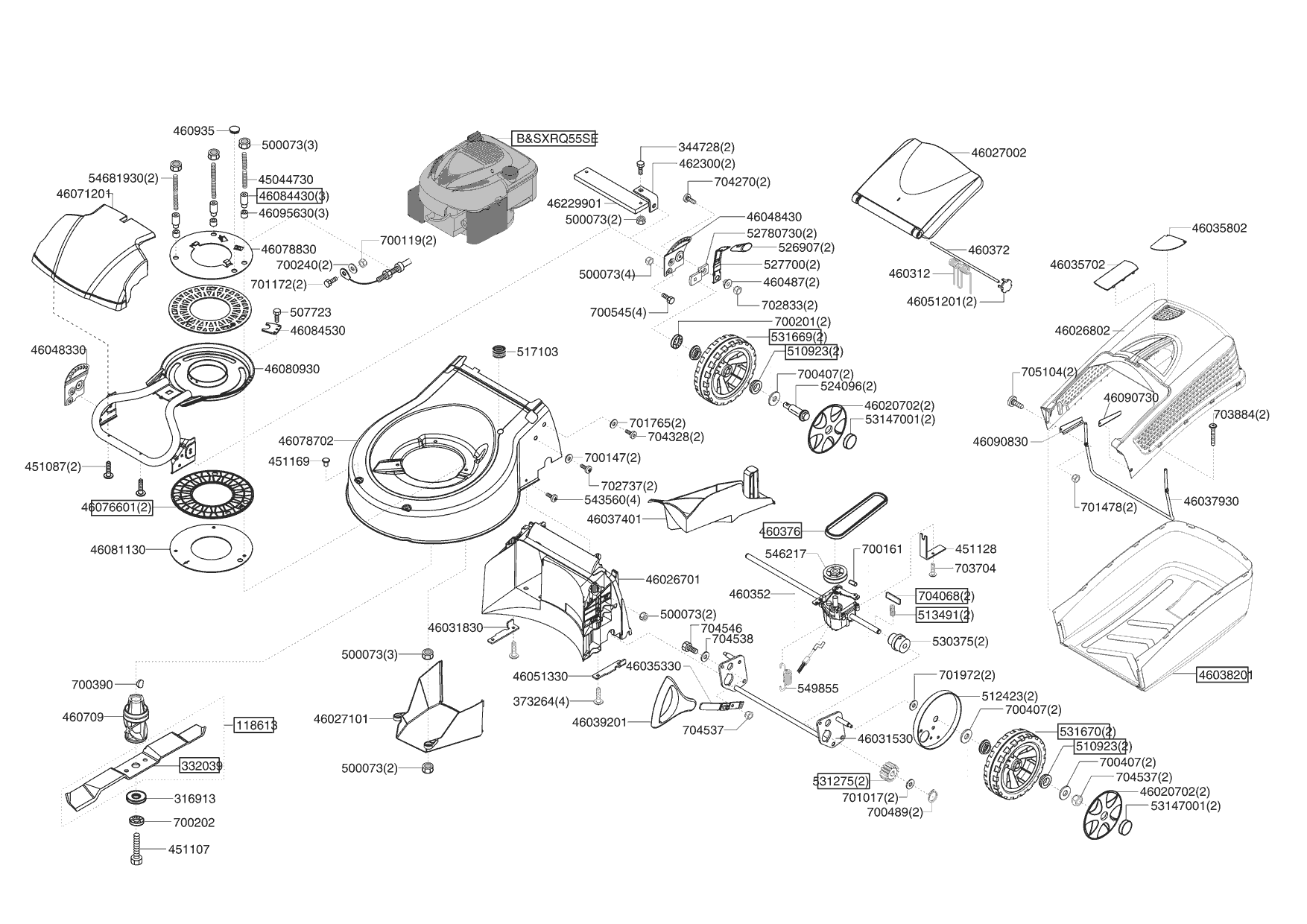 Zeichnungen von Powerline Benzinrasenmäher VARIO 4700 BR 11/2005 - 05/2006 mit der Geräte-Artikelnr. 118650: