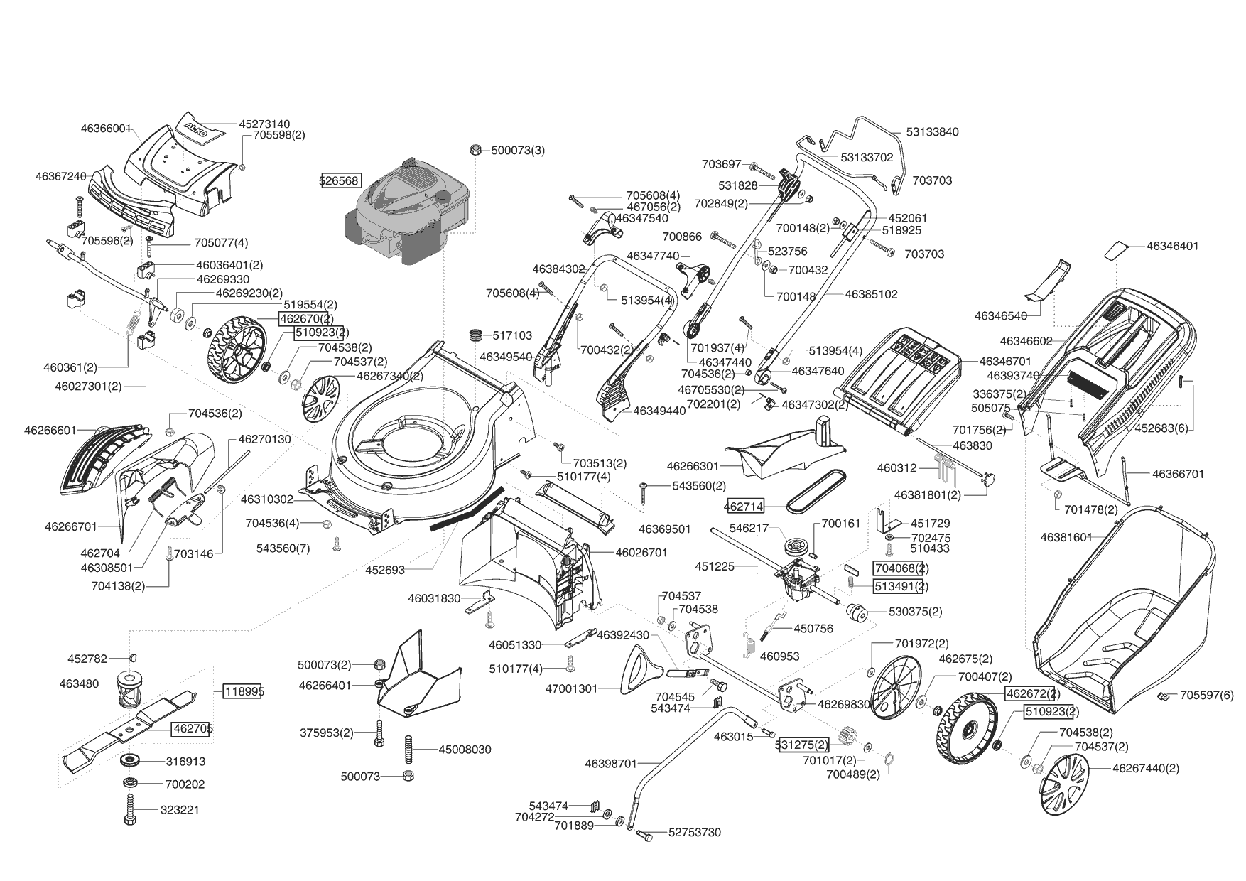 Zeichnungen von Powerline Benzinrasenmäher 5200 BR-H 11/2008 - 04/2012 mit der Geräte-Artikelnr. 119122: