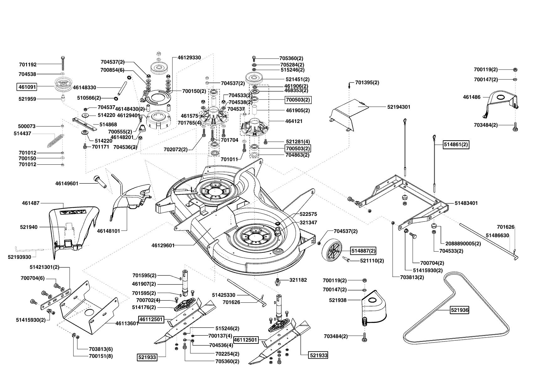Zeichnungen von Powerline Rasentraktor T18-102 HDS 11/2008 - 11/2009 mit der Geräte-Artikelnr. 119007: