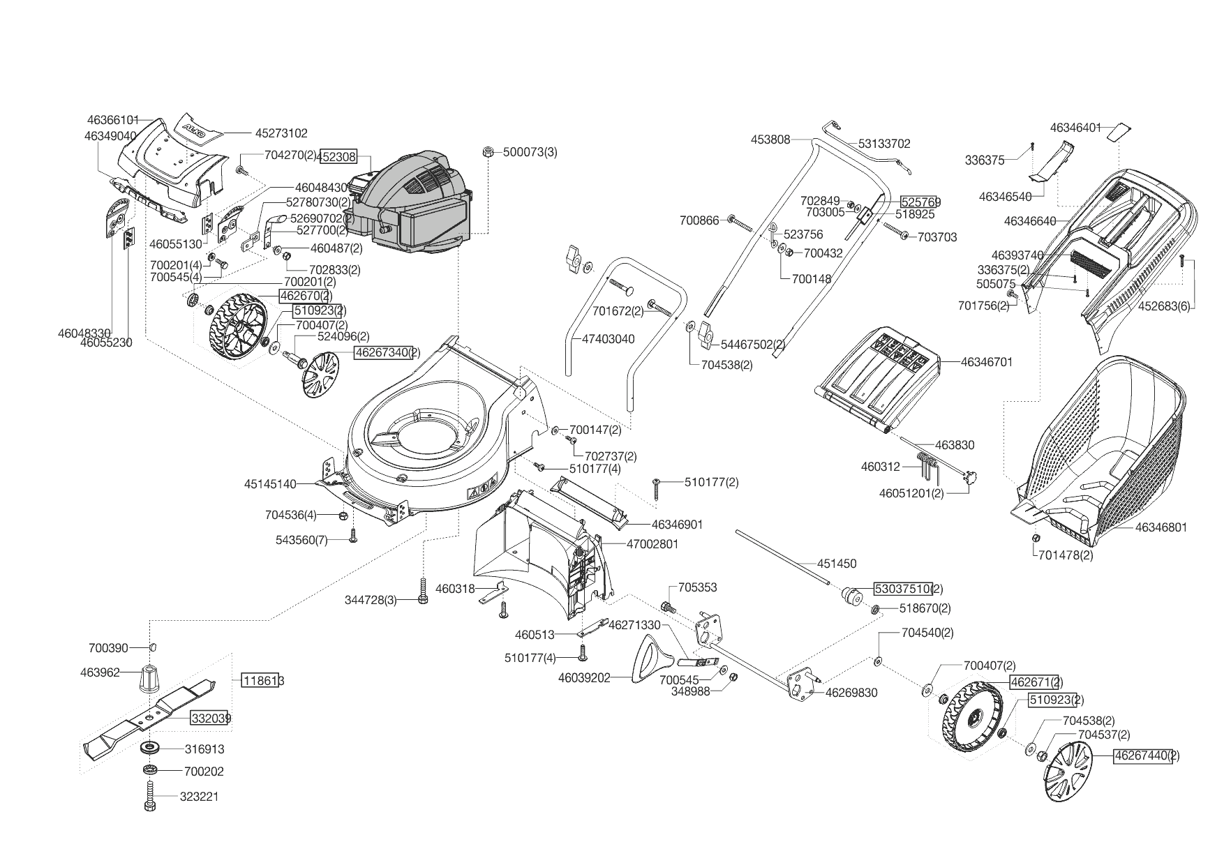Zeichnungen von Dehner Benzinrasenmäher SILVER 470 B EDITION 11/2010 - 06/2013 mit der Geräte-Artikelnr. 119099: