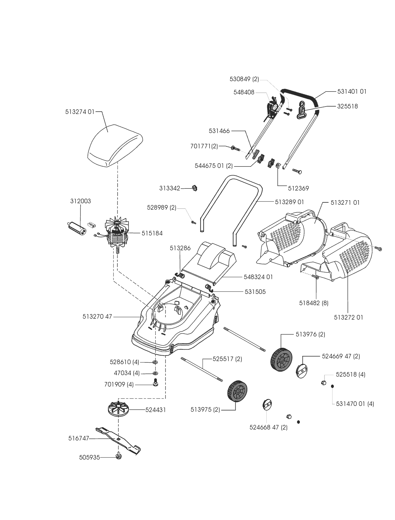 Zeichnungen von Dehner Elektrorasenmäher ELO 32 12/1999 - 11/2002 mit der Geräte-Artikelnr. 120914: