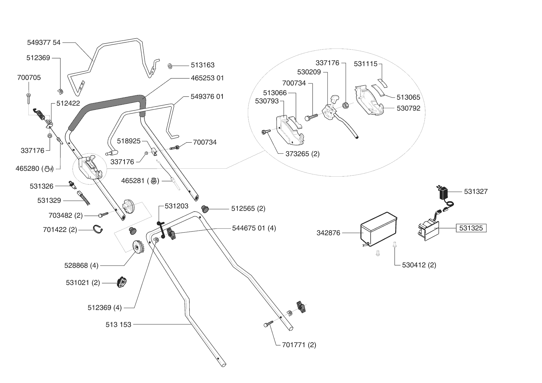 Zeichnungen von Dehner Benzinrasenmäher V 56 HESZ 12/2003 - 02/2004 mit der Geräte-Artikelnr. 120917: