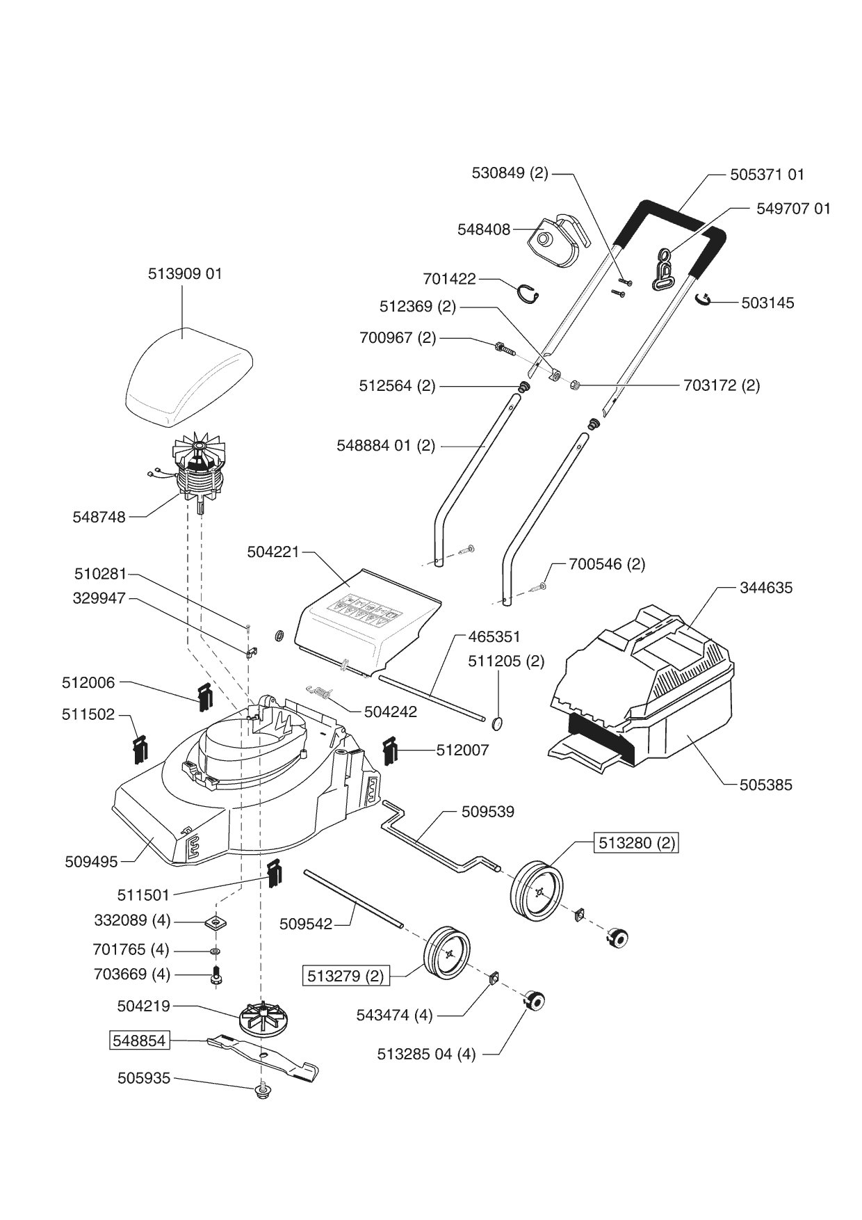 Zeichnungen von Ginge Elektrorasenmäher Favorit 32 E 12/2003 - 02/2004 mit der Geräte-Artikelnr. 121104: