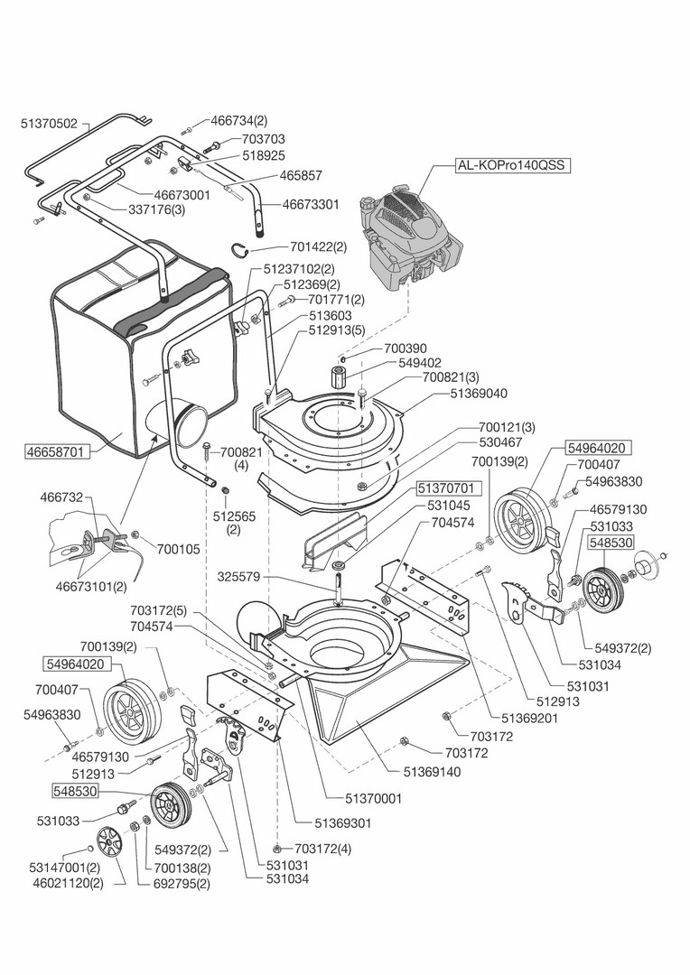 Zeichnungen von AL-KO Laubsauger 75 B Hurricane 12/2011 - 02/2012 mit der Geräte-Artikelnr. 121605: