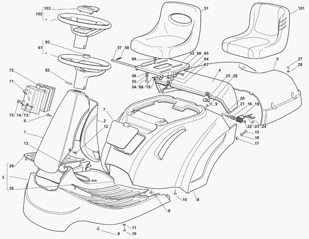 Zeichnungen von Solo by AL-KO Aufsitzmäher 555 / 555 Hydro 2011 mit der Geräte-Artikelnr. 126606: