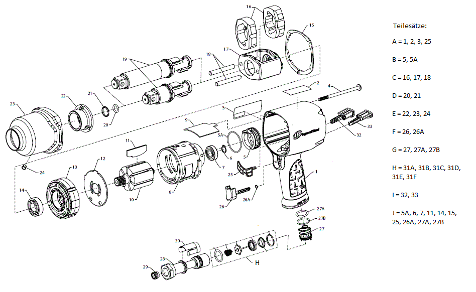 Zeichnung Sollten Sie Fragen zu einem Ersatzteil vom IR (Ingersoll Rand) 2155QiMAX - Air Impactool haben, können Sie uns gerne eine E-Mail (mit einem Foto vom Typenschild Ihres Gerätes) schreiben oder eine Ersatzteilanfrage stellen.