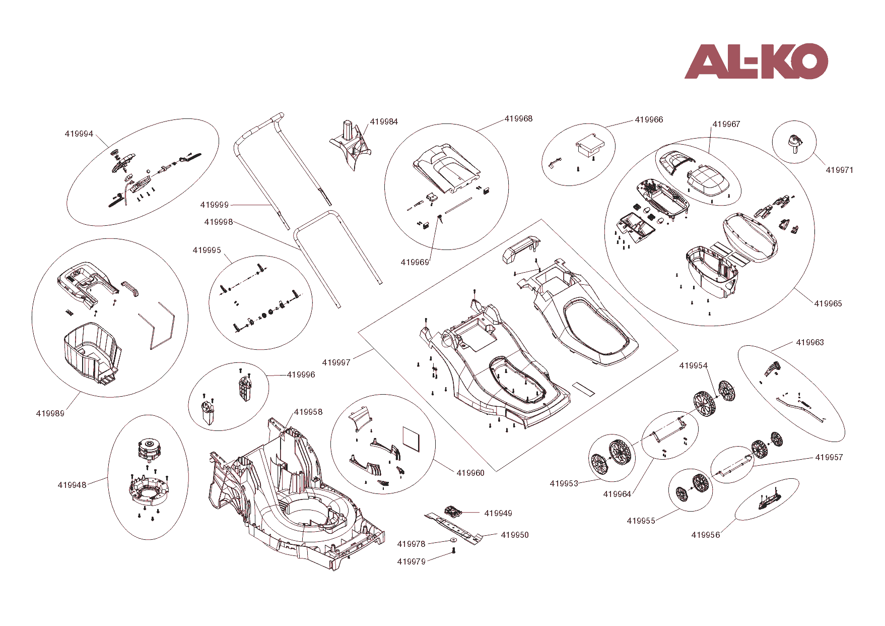 Hier finden Sie alle Ersatzteile für AL-KO Akku-Rasenmäher 38.2 Li COMFORT (113843):