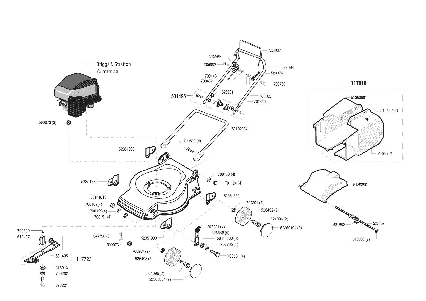 Zeichnungen von Gardol Benzinrasenmäher 4240 B mit der Geräte-Artikelnr. 117826: