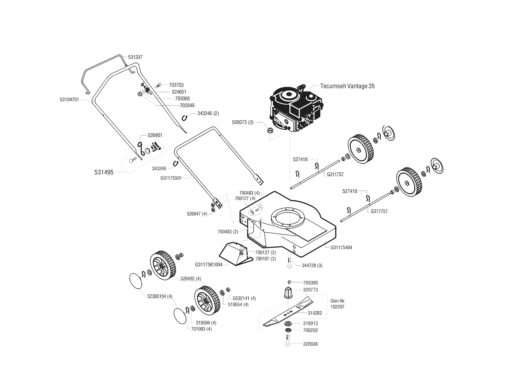 Zeichnungen von Ginge Benzinrasenmäher 46 Seite mit der Geräte-Artikelnr. 117907: