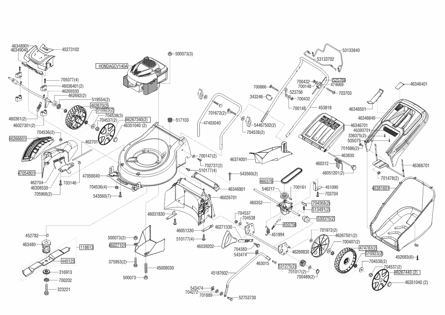 Zeichnungen von AL-KO Benzinrasenmäher 4610 HPD EASY-MOW mit der Geräte-Artikelnr. 119521: