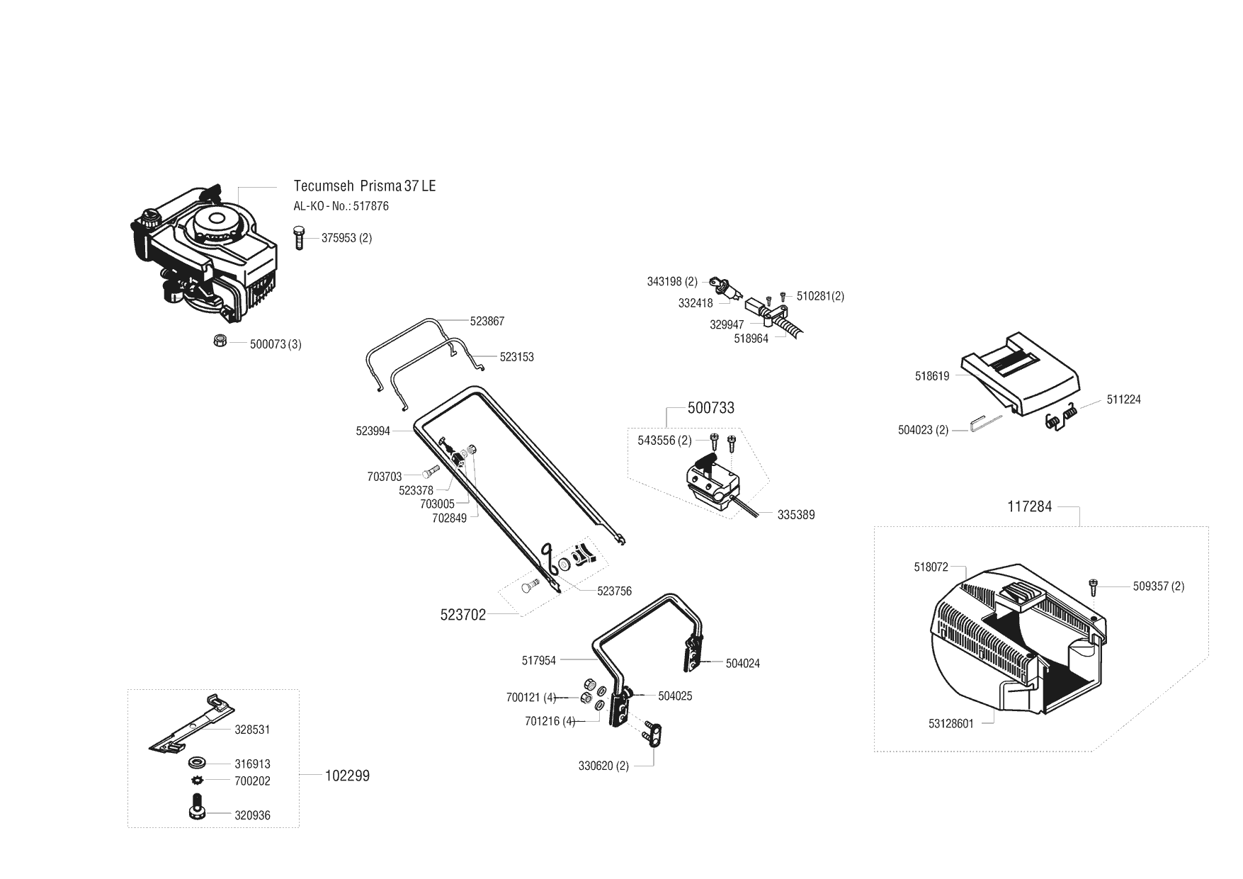 Zeichnungen von Gardol Benzinrasenmäher 480 BRE mit der Geräte-Artikelnr. 117229: