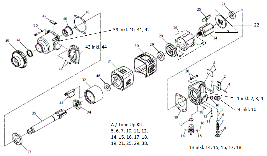 Zeichnung Sollten Sie Fragen zu einem Ersatzteil vom IR (Ingersoll Rand) 631L - Air Impact Wrench haben, können Sie uns gerne eine E-Mail (mit einem Foto vom Typenschild Ihres Gerätes) schreiben oder eine Ersatzteilanfrage stellen.