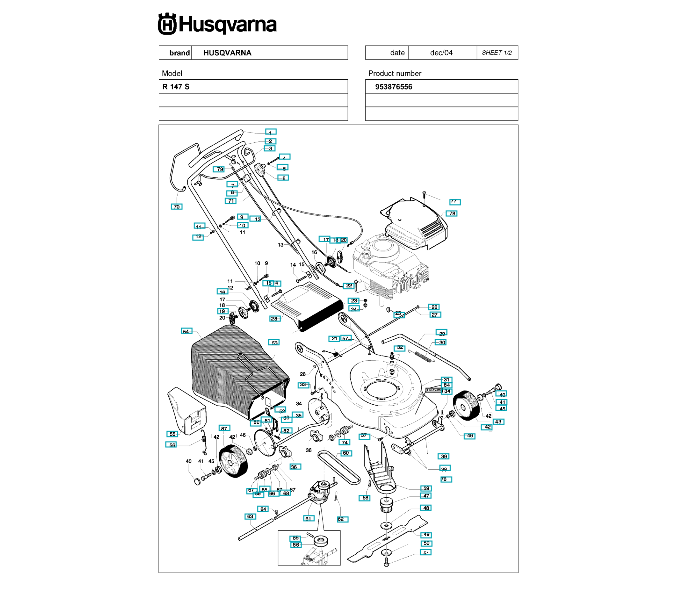Ersatzteile für Husqvarna Rasenmäher private Nutzung R147 ( R147S ) 953876556, 2005-02: