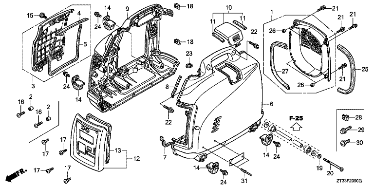 Ersatzteile für Honda Stromerzeuger EX7 U (U/A) Baugruppe ABDECKUNG, VORNE/SEITENABDECKUNG
