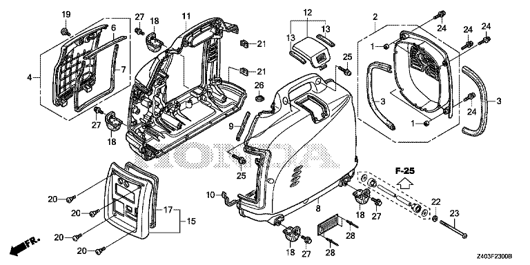 Ersatzteile für Honda Stromerzeuger EU10IT1 SK1 (SK1) Baugruppe ABDECKUNG, VORNE/SEITENABDECKUNG