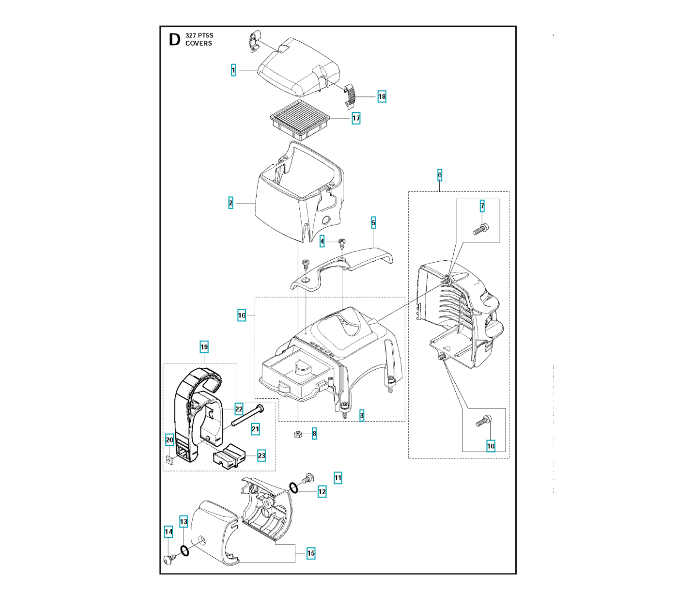 Ersatzteile für Husqvarna Hochentaster 327PT5S ( 20120100001-CURRENT ) ABDECKUNG: