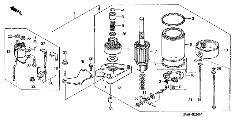 Ersatzteile für Honda Außenbordmotoren BF30A1 LRSA (LRSA) Baugruppe ANLASSER