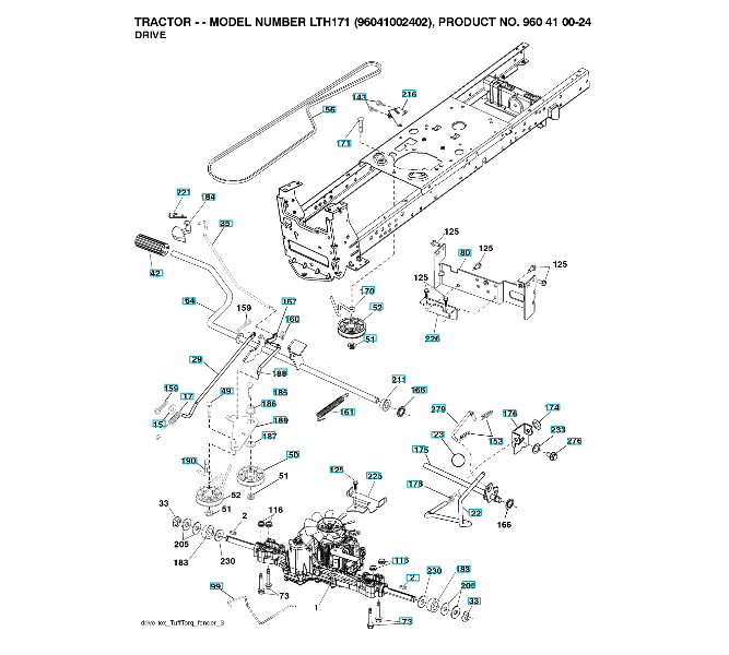 Ersatzteile für Husqvarna Gartentraktor LTH171 ( 96041002402, 2008-01 ) ANTRIEB: