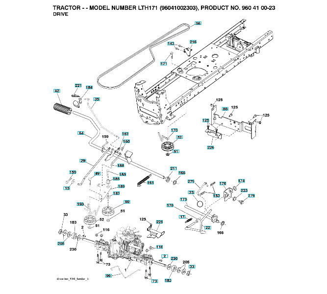 Zeichnung für Husqvarna Gartentraktor LTH171 ( 96041002303, 2008-09 ) ANTRIEB