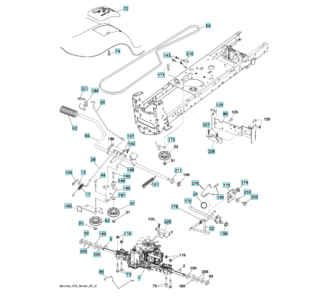 Zeichnung für Husqvarna Gartentraktor LTH2038 ( 96043014500, 2012-08 ) ANTRIEB