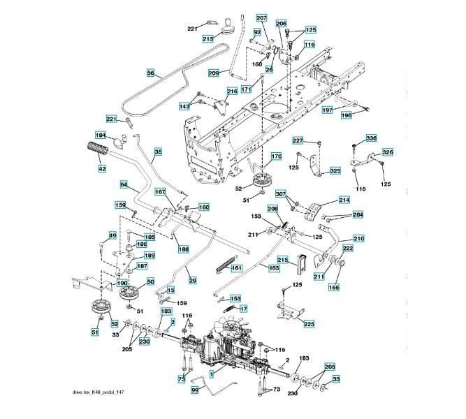 Zeichnung für Husqvarna Gartentraktor YT46LS ( 96043016701, 2013-09 ) ANTRIEB
