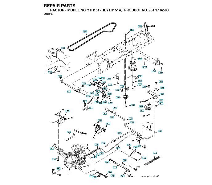 Zeichnung für Husqvarna Gartentraktor YTH151 ( HEYTH151A, 954170203, 2004-01 ) ANTRIEB Sollten Sie Fragen zu einem Ersatzteil von YTH151 ( HEYTH151A, 954170203, 2004-01 ) haben, können Sie uns gerne eine Ersatzteilanfrage (mit einem Foto vom Typenschild Ihres Gerätes) stellen.