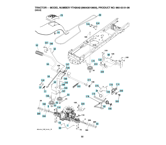 Ersatzteile für Husqvarna Gartentraktor YTH2042 ( 96043010600, 2009-12 ) ANTRIEB: