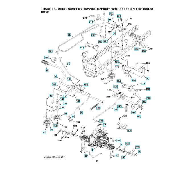 Ersatzteile für Husqvarna Gartentraktor YTH22V46XLS ( 96043010300, 2009-12 ) ANTRIEB: