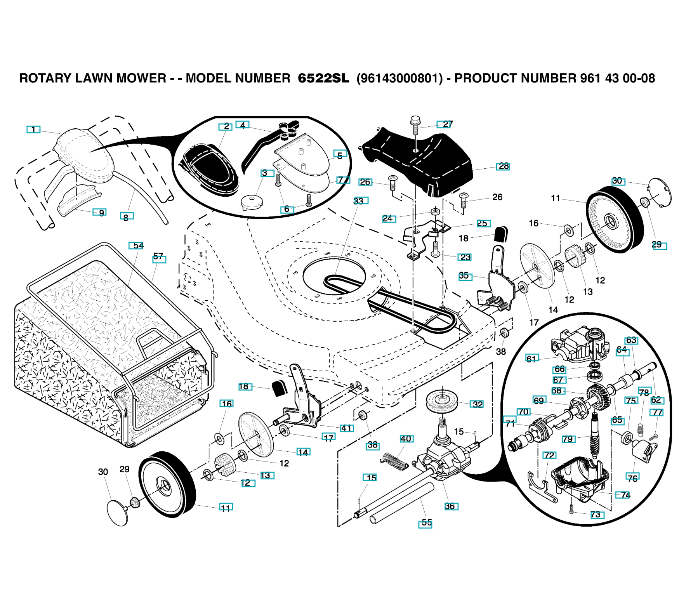 Ersatzteile für Husqvarna Rasenmäher private Nutzung 6522SL ( 96143000801, 961430008, 2005-09 ) ANTRIEB: