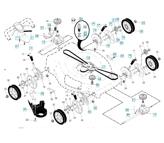 Folgende Ersatzteile für Husqvarna Rasenmäher private Nutzung HU725AWD/BBC ( 96143010401, 2014-03 ) ANTRIEB können Sie hier bestellen: