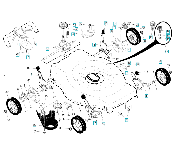 Folgende Ersatzteile für Husqvarna Rasenmäher private Nutzung HU725BBC ( 96143009402, 2014-04 ) ANTRIEB können Sie hier bestellen: