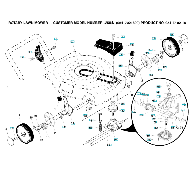 Folgende Ersatzteile für Husqvarna Rasenmäher private Nutzung J55S ( 95417021800, 954 17 02-18, 2005-02 ) ANTRIEB können Sie hier bestellen: