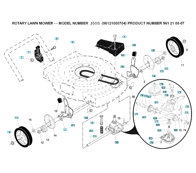 Folgende Ersatzteile für Husqvarna Rasenmäher private Nutzung J55S ( 96121000704, 2008-02 ) ANTRIEB können Sie hier bestellen: