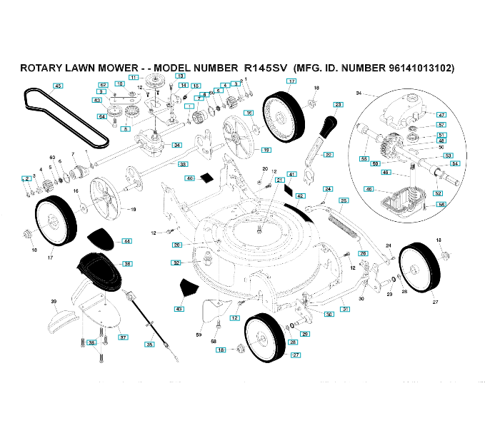 Folgende Ersatzteile für Husqvarna Rasenmäher private Nutzung R145SV ( 96141013102, 2008-02 ) ANTRIEB können Sie hier bestellen: