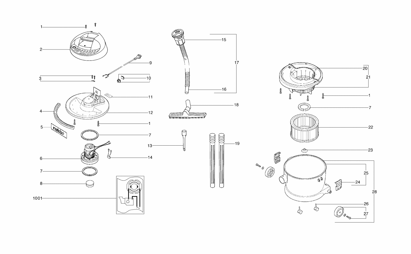 Zeichnung 1 Sollten Sie Fragen zu einem Ersatzteil von Metabo AS 1200 Allessauger Absauger 601200190 haben, können Sie uns gerne eine E-Mail (mit einem Foto vom Typenschild Ihres Gerätes) schreiben oder eine Ersatzteilanfrage stellen.